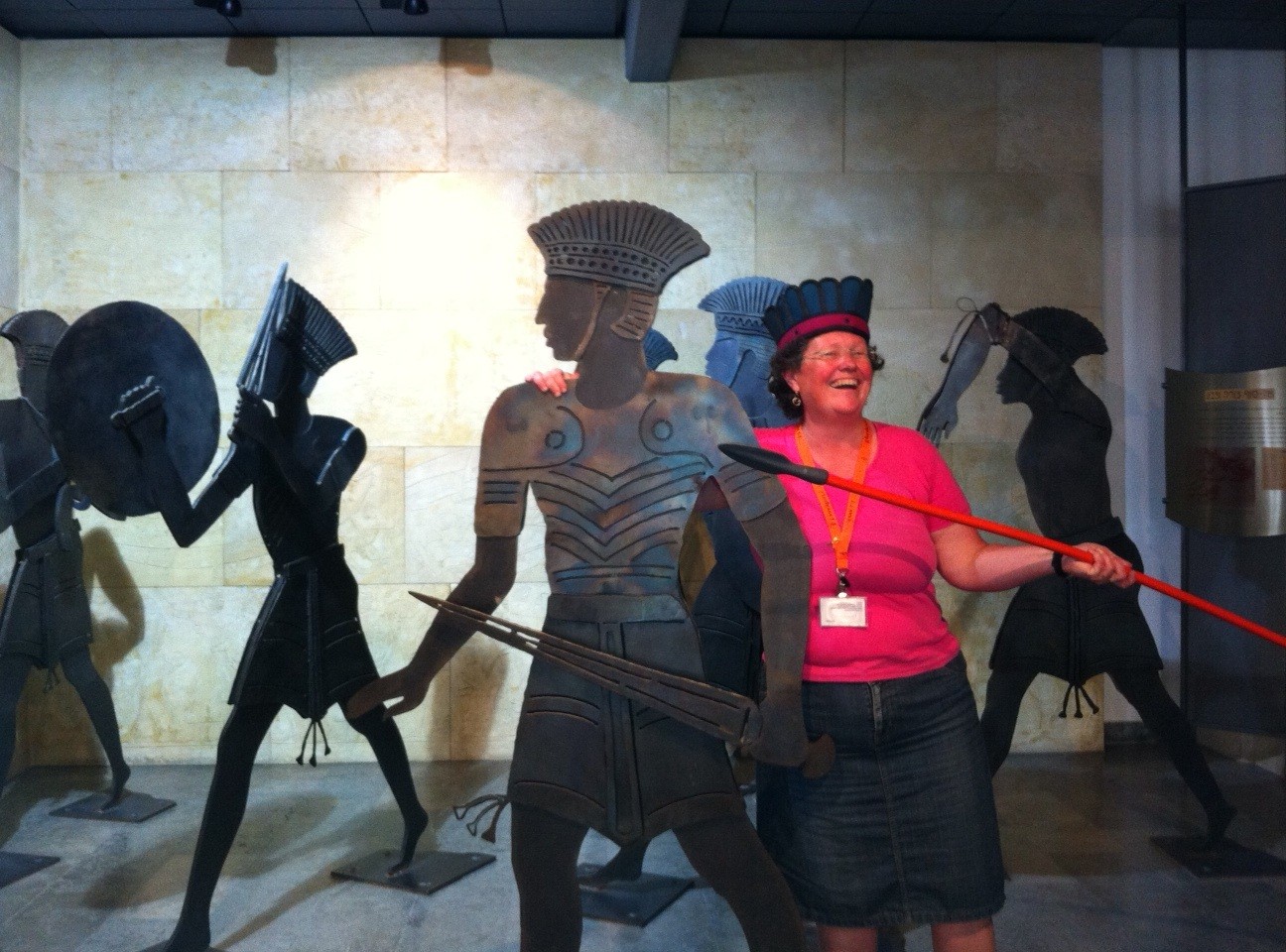 Dan’s descendent, Shimshon (Sampson) lived in the area of Beit Shemesh at the time of the Judges, a time when every man did what was right in his own eyes. He took a wife from the Philistines and spent his life in a battle of wits and strength against them. He fought the battle against them from the inside, with some successes but mostly tragic failures. He does succeed in destroying some cities and temples, but is ultimately stripped of his strength and is tortured by the Philistine people. (Check out the picture of me dressed up as a Philistine!)